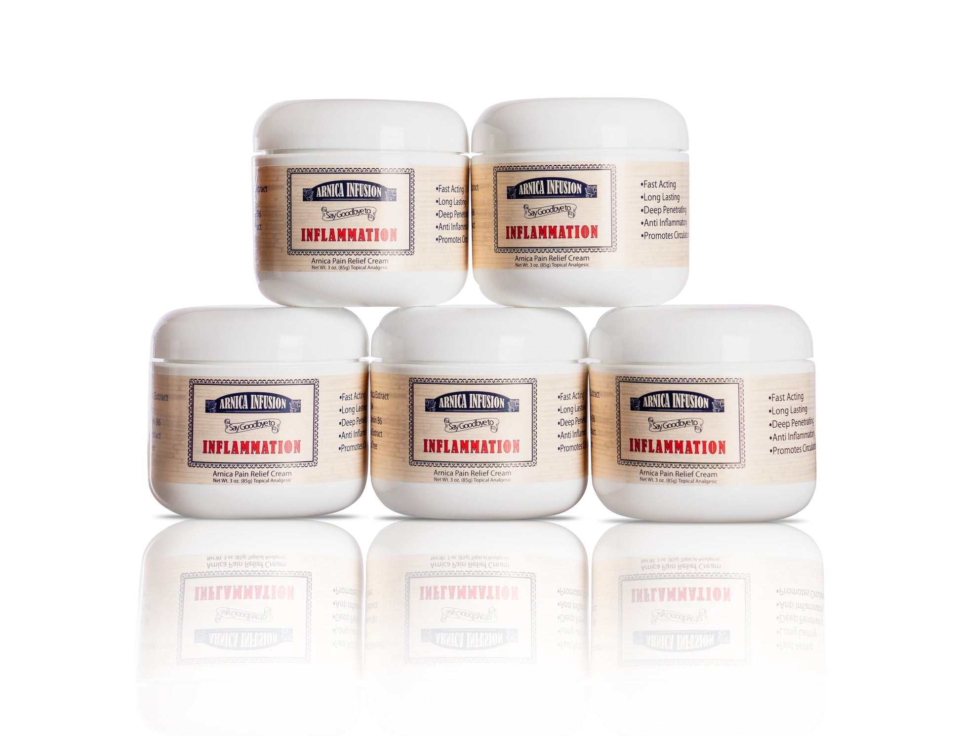 Arnica Infusion Pain Relief Cream - 5-Pack - Fast Acting Arnica Cream - For Sore Muscles, Joints, Arthritis, Backaches, Sprains, Strains & Bruises